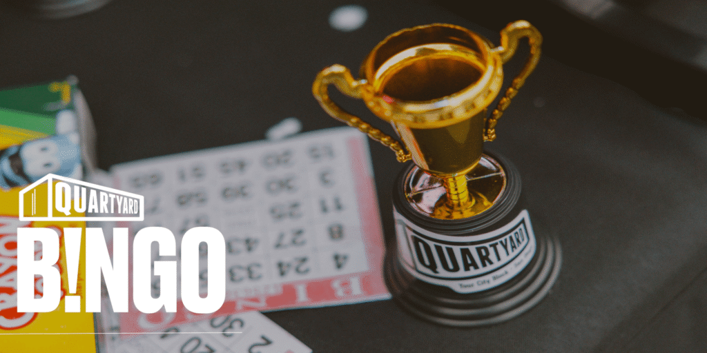 Bingo is back and better than ever at Quartyard! Our interactive bingo event offers a unique experience that gets the crowd involved. Whether it’s picking bingo numbers, spinning the win-it wheel, or participating in minute to win it games for prizes, this bingo event is truly one-of-a-kind.