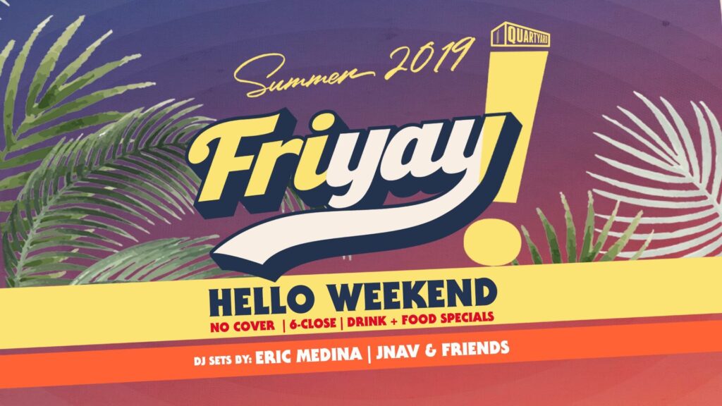Friday, August 30 | 6:00 - 10:00 PM | No cover DJ Sets By: Eric Medina JNAV & Friends