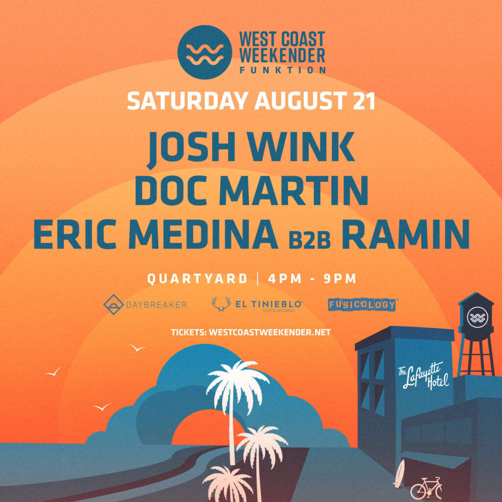 We are excited to welcome you all to West Coast Weekender Function where we will be showcasing the soul of the west coast! We are excited to bring you 2 house music legends: Josh Wink (Ovum) & Doc Martin (Sublevel). Along with co-founder of west coast weekender Eric Medina playing b2b with Music is 4 Lovers resident Ramin.