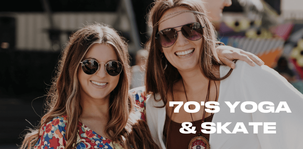 What to bring: Yoga mat, water bottle, skates (optional skate rental is also available), your best 70's outfit.