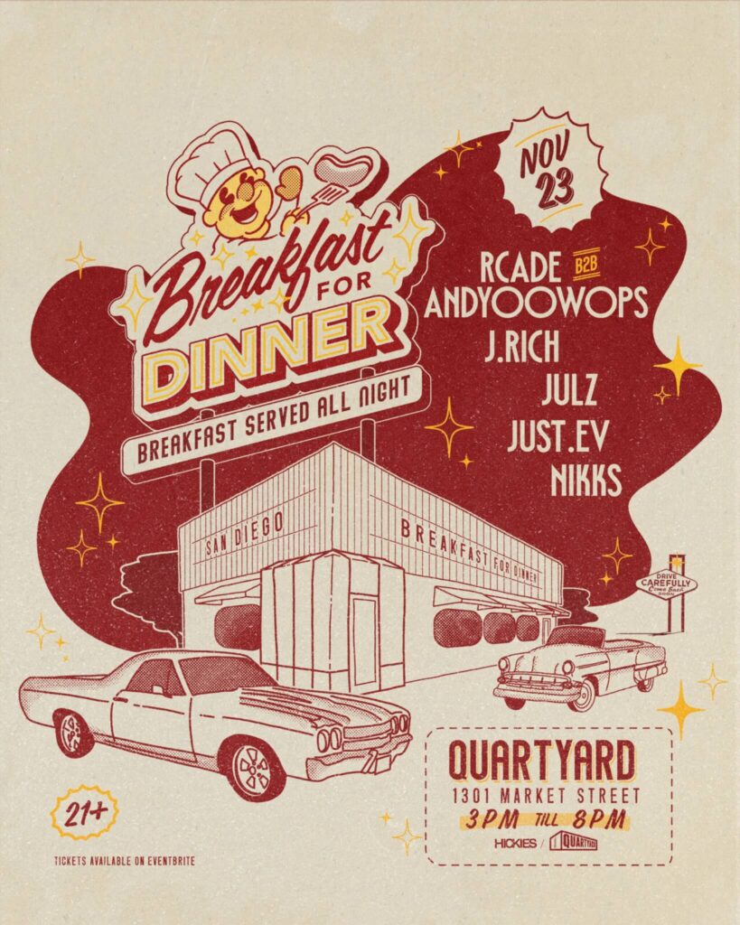 From the heart of Downtown Las Vegas, Breakfast For Dinner rolls into San Diego for its debut at Quartyard — in collaboration with Hickies & Dry Humps.