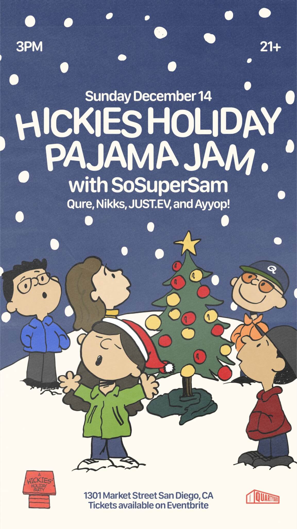 This Holiday season we’re throwing our annual Pajama Jam featuring SOSUPERSAM live at Quartyard SD.