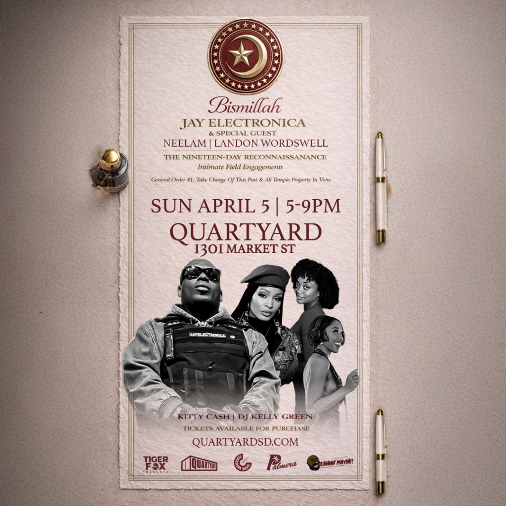 Born in New Orleans, Jay Electronica is an acclaimed, enigmatic American rapper and producer known for dense, lyrical content. Rising to fame via MySpace in 2007 with Act I: Eternal Sunshine (The Pledge), he signed with Roc Nation in 2010. He is best known for the acclaimed track "Exhibit C" and his long-delayed debut album (Jay-Z Collab Album), A Written Testimony (2020).