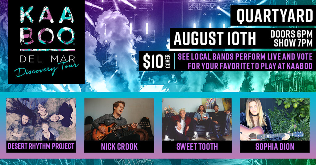 The KAABOO Discovery Tour will be stopping at Quartyard on Friday, August 10th.