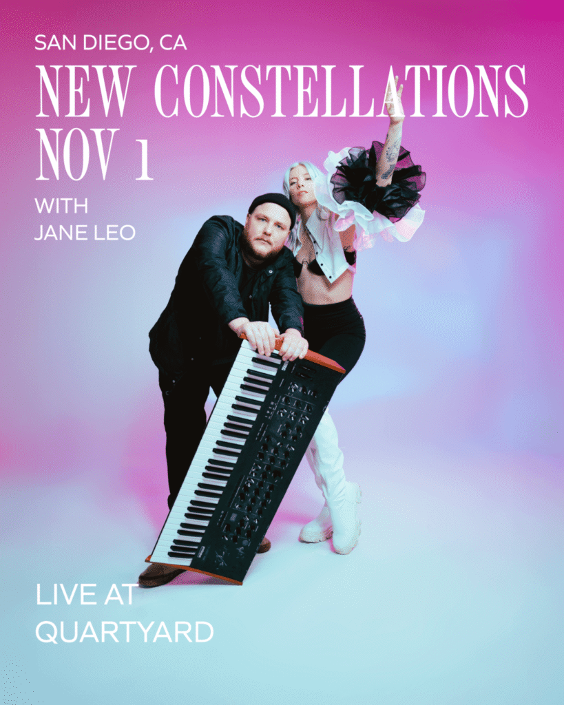 The Portland-based duo first explored collaborating when they were 14, recording a song together in Josh’s childhood bedroom, before spending the next 15 years exploring their individual approaches to music separately and eventually crafting the dynamic perspective that would become New Constellations. The two debuted with the single, “Hot Blooded,” an incomprehensibly magnetic voyage that offers warmth and compassion, and has now amassed over 45 million streams. Following a monumental year, Harlee and Josh continue to radiate their electrifying chemistry, now amplified by the addition of Kyle, a remarkable third member. With his exceptional musical prowess, Kyle infuses their live performances with a refreshing and captivating new energy. They are gearing themselves for an upcoming album release that can only be described as a continuation of their signature gilded alchemy.