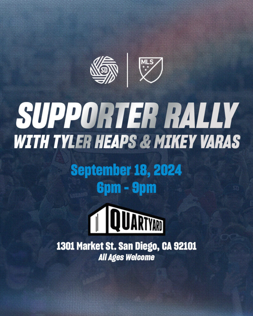 Get ready to show your support for San Diego FC at the next Supporter Rally! Join us on Wednesday, September 18th 2024, starting at 6 PM, at Quartyard Downtown.