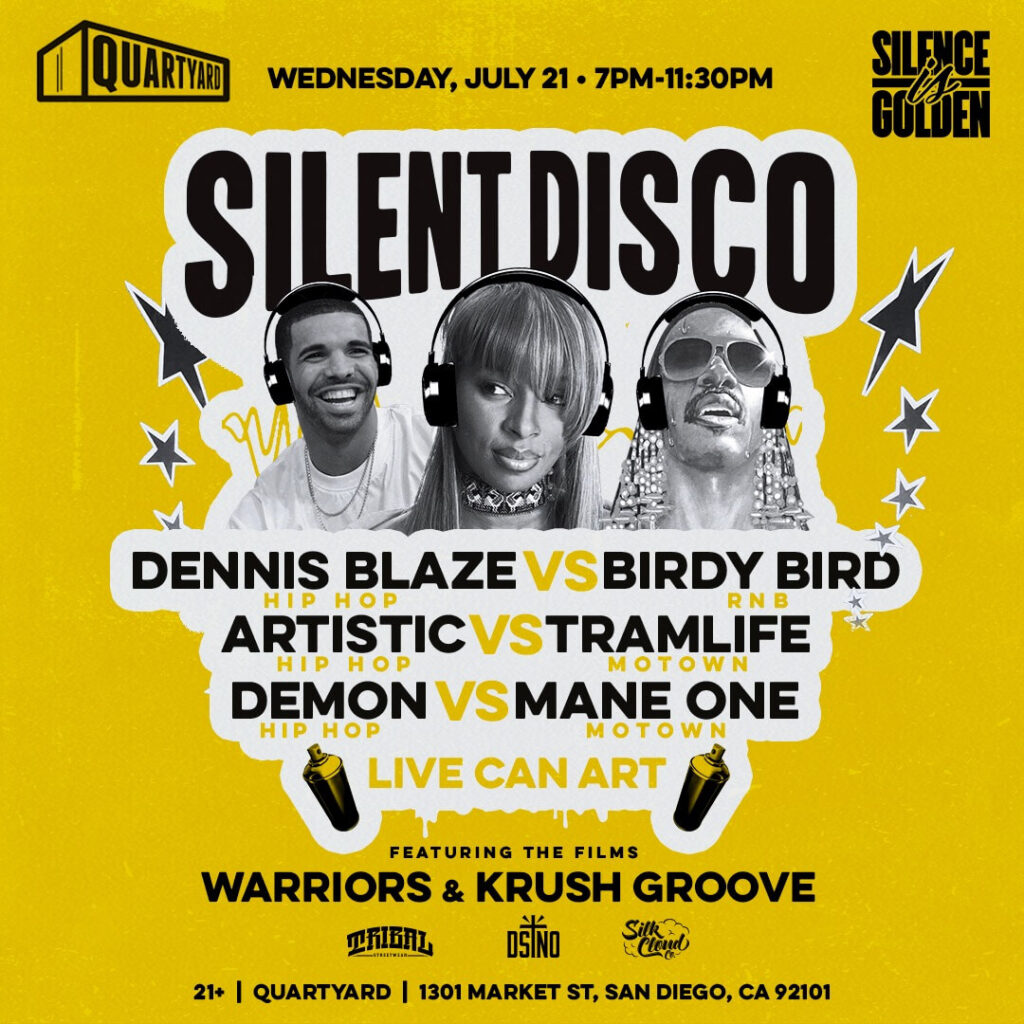 A silent disco party featuring DJ Demon, Artistic, TRAMLIFE, Mane One, Dennis Blaze, and Birdy Bird.