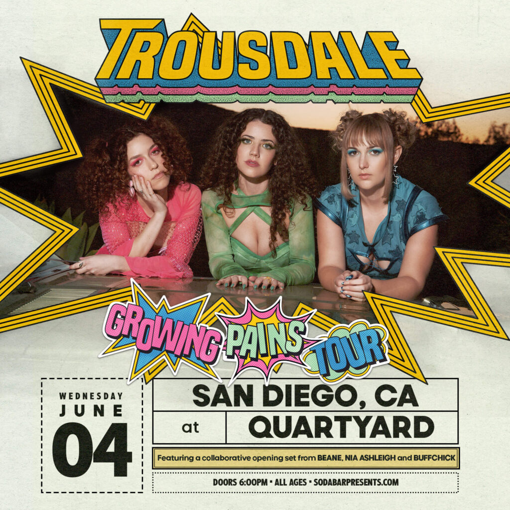For Trousdale—the trio of Quinn D’Andrea, Georgia Greene, and Lauren Jones—the ache of growing through change resonates deeply. Like certain long nights of childhood where growing pains can feel like every inch is aching, cramping, pinching, Trousdale understands the feeling that comes with facing down existential anxiety, and matters of the heart. “We can acknowledge the strides we’ve made and be grateful, but we’ve talked a lot about how tired we are,” Jones says with a laugh. “We’ve been thinking a lot about the tension that comes with change, wanting it, fighting it, embracing it, but learning to thrive in that moment.” On Trousdale’s upcoming LP, Growing Pains (due April 11th) the band works through those struggles to find strength, courage, and growth in each other. “From what was, something new can always grow.” D’Andrea says.
