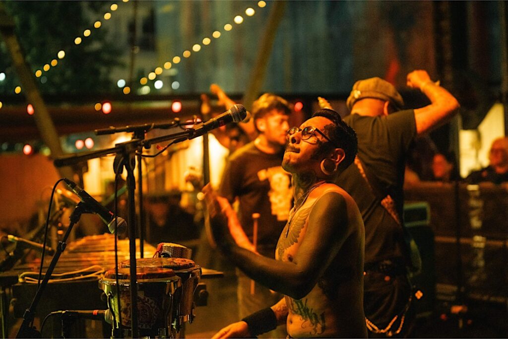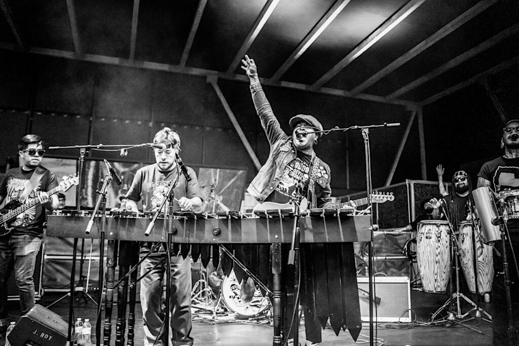 Their shows have become home to the now-infamous marimba mosh pit across the globe, joining intergenerational audiences in moments of essential release and community around their hard-hitting, forward-thinking, unrelenting punk-infused cumbias.