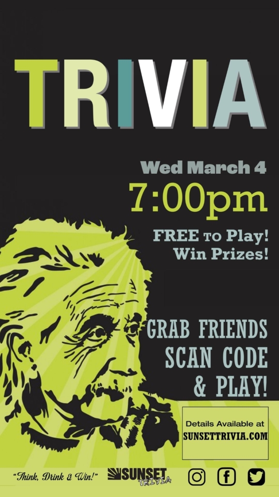 Join us for Sunset Trivia every 1st and 3rd Wednesday at Quartyard.