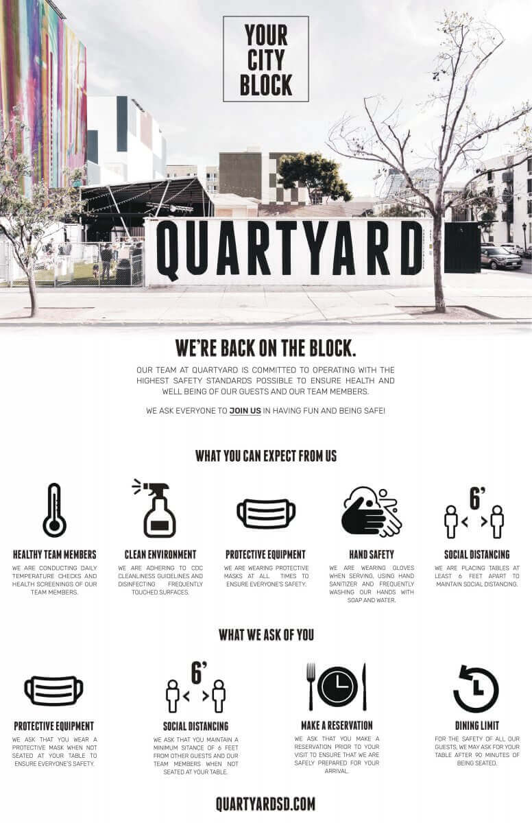 We are rolling out our DOG RUN at Quartyard and here are the details on how you reserve a spot. For the safety of all guests and to remain compliant with San Diego County regulations new guidelines will be implemented to offer an off leash dog experience for you and your pups.